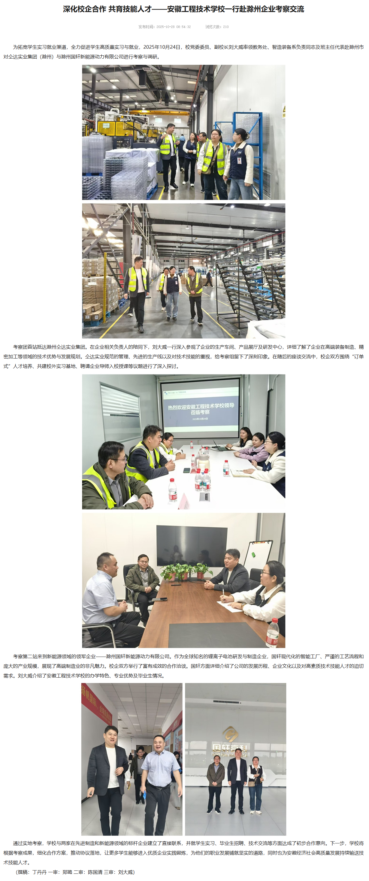 深化校企合作 共育技能人才——安徽工程技术学校一行赴滁州企业考察交流